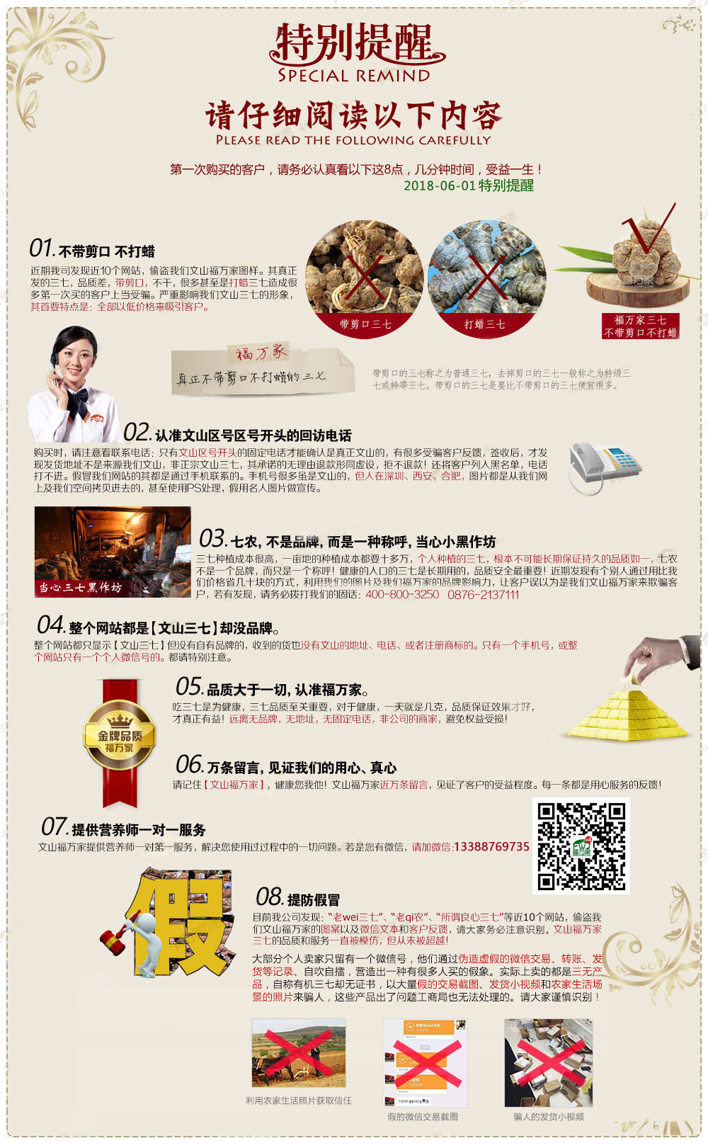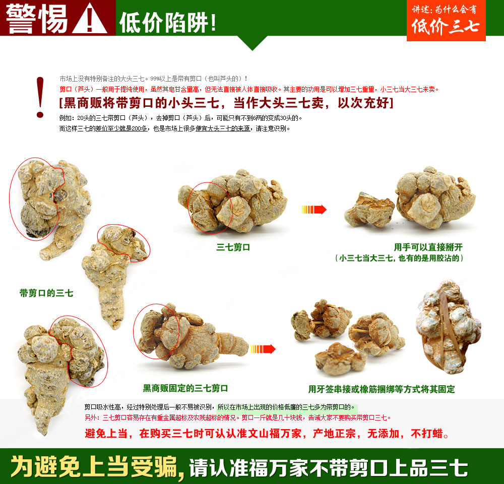 2、特別提醒:近期發(fā)現(xiàn)個別商家三七粉比同價位的三七價格更低。例如12頭15頭三七粉比12頭15頭未打粉三七還低。請謹(jǐn)慎購買。